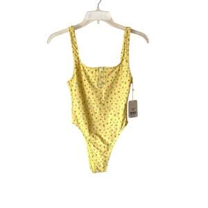 Frankie’s Bikinis x Pamela Anderson NWTs Pacific Yellow Floral Print One Piece size small