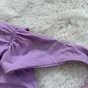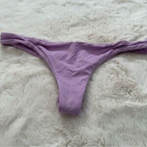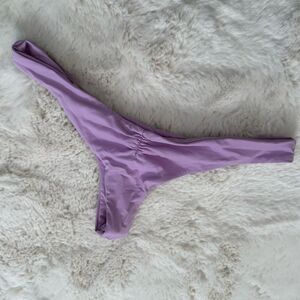 Frankie’s bikinis bright purple skimpy thong bikini bottoms size large ruched