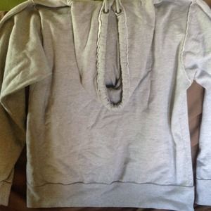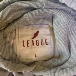 Super comfy top quality collegiate hoodie. Franklin Pierce University--bought on campus. Inside is warm fleece, hood is insulated. Light grey color with "Franklin Pierce Ravens 62" on the front. Drawstring hood and front kangaroo pocket. 80/20 cotton blend.