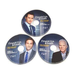 “Franklin & Bash” complete first season DVD set starring Mark-Paul Gosselaar and Breckin Meyer. Three discs (10 episodes). Widescreen edition. 2012. Not Rated.