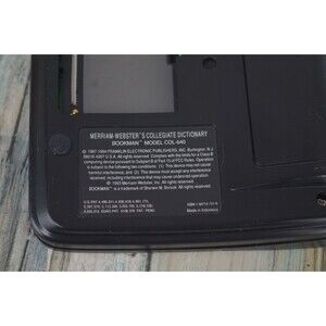 Franklin Bookman Collegiate Dictionary 10th Edition Electronic Book new out of package. It was returned due to the right side backlight being dim & faded. But it works! See examples in the photos.
