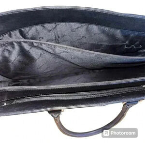 FRANKLIN COVEY laptop tote/briefcase in faux black leather with silver toned hardware. Excellent condition.