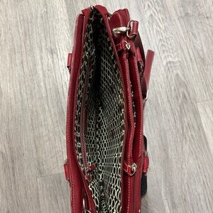• Burgundy red pebbled leather, satchel style with top handles