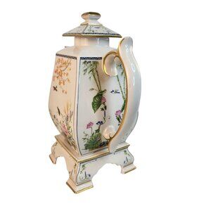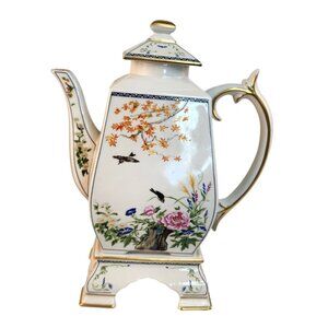 Franklin Mint 1992 Porcelain Teapot Japanese Ikebana Floral Bird Design Square S