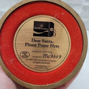 Franklin Mint 1995 Coca Cola glassed Domed Dear Santa please pause here