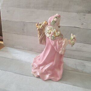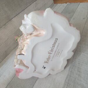 This beautifully crafted Santa Claus figurine features intricate details with roses and a doll, offering a charming addition to holiday decor. Its gentle pastel hues and delicate design create a warm, festive atmosphere. The ceramic construction ensures durability, making it a timeless piece for seasonal or year-round display in homes or collections.
