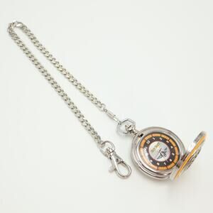 Pre-owned but in great condition! The chain is in good condition with no flaws. Only flaw is the Franklin Mint badge that was on the lower back of the pocket watch has fallen out and it missing. The crystal is also in good condition, please see all pictures for details on any scratches if there are any. The watch is currently running smooth and keeping accurate time. Battery was replaced (4/30/25), and we will check the watch before shipping to ensure it is working!