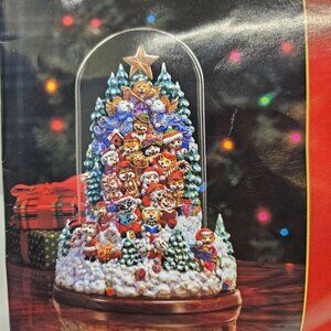 This Limited Edition Franklin Mint Christmas tree is a hand painted musical sculpture featuring Bill Bell's Here Comes Santa Claws cat design. Each cat is an individual with no 2 alike. Winding the key at the back plays a slow and gentle 18 note "Here Comes Santa Claus" carol.