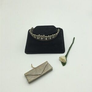 The Franklin Mint Diana, Princess of Wales Porcelain Portrait Doll with Pearl Dress. All of the accessories, tiara, purse and rose, are included. This doll was never taken out of the package. The lid was taken off to display, but doll and accessories stayed in the box at all times. Carefully preserved.