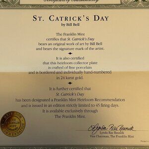 Franklin Mint "St. Catrick's Day" March Collector Plate in the Bill Bell Cat Set
