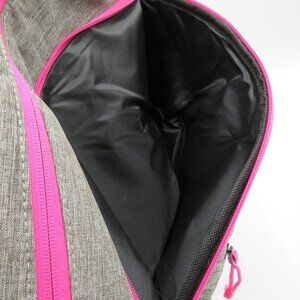 Color/Style: Heather gray body with hot pink zippers and accents; gray back with pink padded mesh panels