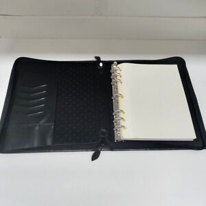 Franklin Planner Leather Nylon Executive Padfolio Organizer Black 7 Ring Binder