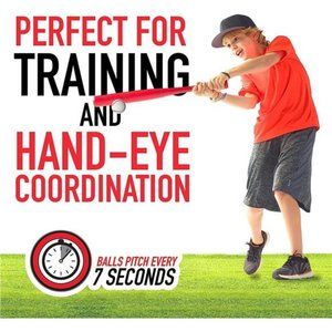 🧿ADJUSTABLE PITCH SPEED: You can ramp up or slow down the speed to 10, 15, or 20 mph so that you get the right speed every time. The balls pitch every 7 seconds, and the red light indicates the pitch release so kids are ready for the ball to come each time.