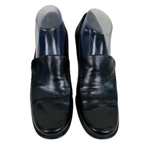 Franko Sarto Black Leather Nolan Tailored Heeled Slip On Loafers Y2K Size 8.5