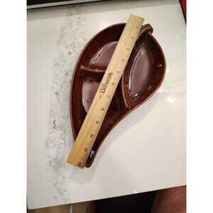 Frankoma Plainsman Brown Leaf Divided Dish 83 Glaze Glossy