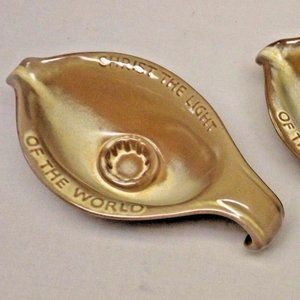 Frankoma Pottery Plainsman Brown Set of 2 Oral Roberts 1971 Candle Stick Holders