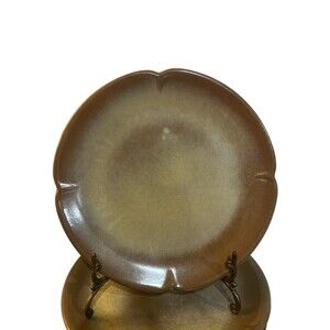 Frankoma Pottery Prairie Desert Brown 10” Dinner Plates 5F Scalloped Set of 2