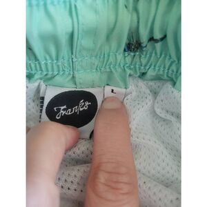 Franks Australian Swim Trunks. Franks shorts are made with super soft, lightweight and quick-dry fabric, featuring soft mesh lining and concealed side and back pockets. Made with high quality cotton rope andpremium trim. Size is Large, mid length. Approximate measurements in photos both stretched and un-stretched. Would fit a medium. Dragonfly's.