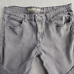 Franky Max Jeans Men's W36 L30 Tapered Gray Wash Moto Biker Reinforcement Denim