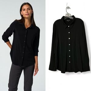 Franne Golde Black Katherine Button Down Shirt Size XXL Wrinkle Resistant.