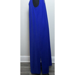 The Franne Golde Women’s Royal Blue Maxi Dress in size L offers a stylish and comfortable option for casual occasions. This sleeveless dress features a flattering V-neckline and long length, perfect for warm weather. Made from polyester, the dress is stretchy for a great fit, and the solid royal blue color adds a pop of color to your wardrobe. The Franne Golde brand ensures quality and style, making this dress a versatile choice for the summer and spring seasons. This Fanne Golde royal blue maxi dress is the perfect blend of comfort and style, it has slits on each side at the bottom of the dress. This dress is ideal for formal events, weddings, parties, or a night out. Please view all pics carefully and let me know if you have any questions. All items come from a smoke and pet free home.