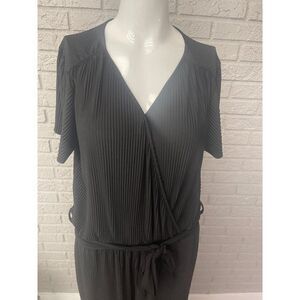 Fransa Black Belted Short Sleeve Accordion Pleated Wide Leg Jumpsuit Size L