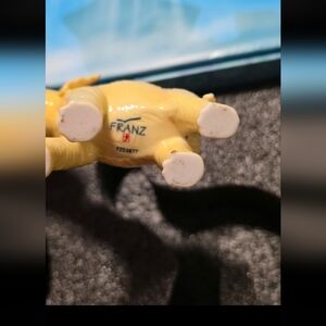 The product is a Franz Porcelain Elephant Set, featuring a cup and saucer set with an elephant pattern in a vibrant yellow color. The packaging consists of styrofoam only, without an outer box. Made of porcelain, this collectible item is themed with animation and is part of the Franz brand. The set is ideal for kitchen and home decor, adding a touch of whimsical charm to any dining experience.
