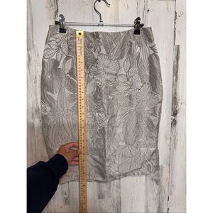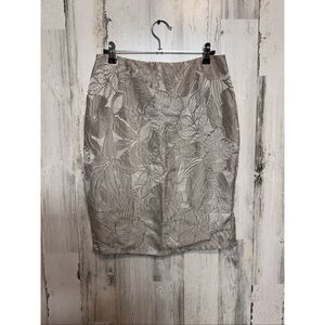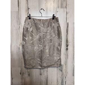 Frascara Silk Blend Floral Jacquard Pencil Skirt Beige Size 4 Made in Canada