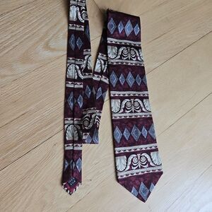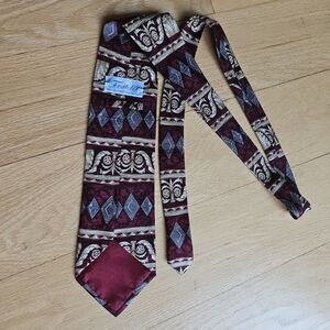 Fratelli 100% Silk Handmade In Italy Grecian Look Maroon Gray Black Men’s Tie