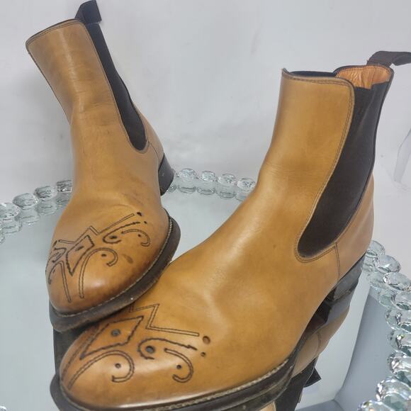 Fratelli Borgioli Handmade Tan Brown Leather Chelsea Boots Mens US 7.5 UK7 ITALY
