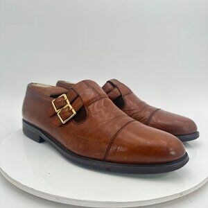 Fratelli Footwear Men Size 8.5M Brown Leather Cap Toe Double Buckle Dress Shoes