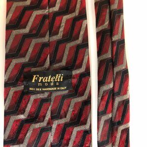 Fratelli Moda Silk Tie Red Black Gray Chevron Pattern Italy Mens Necktie Office