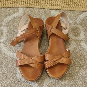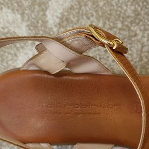 *Fratelli Robinson, Made in Greece, brown leather wedge strappy sandals.