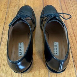 Fratelli Rossetti black leather lace-up shoes on a 2.5" block heel. Leather inside lining, half rubber insert in the front of the leather outsole.