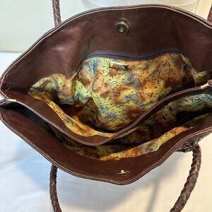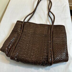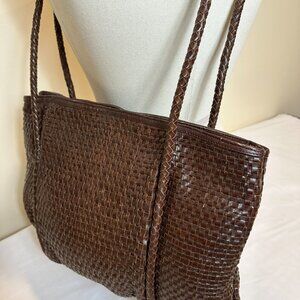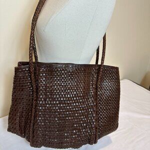 Fratini Firenze Vintage Genuine Brown Leather Basket Weave Shoulder Bag