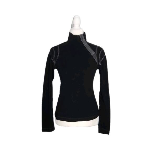 Frauenschuh womens Black Long Sleeve Mock Neck Fleece Pullover Side 1/4 Zip sz 0