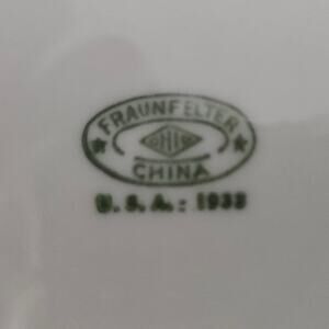 Light surface wear consistent with age; no cracks or major damage. Some utensil marks and small discolorations from prior use. See photos. Additional Notes: Bottom mark reads "Fraunfelter China U.S.A. 1938."