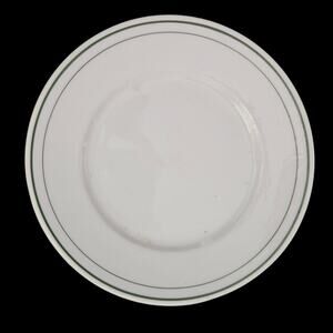 Vintage Fraunfelter China 6¼-inch plate dated 1938. Classic white body with double green line rim, typical of early restaurant or institutional ware. Durable vitrified china with light surface wear from age and use. No cracks or major damage noted. A nice addition for collectors of American restaurant ware or period table settings. See photos for full details.