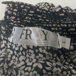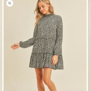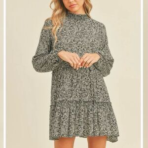 Fray Mock Neck Tiered Black & White Floral Babydoll Mini Dress Women's Size Large