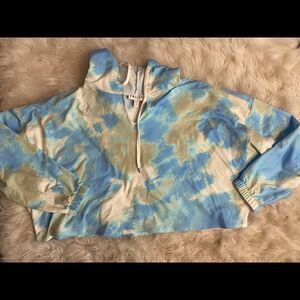 Frayed Blue Gray & White Crop Hoodie Size XL. New with tag. Measurements Bust: 29” Top to bottom: 20”