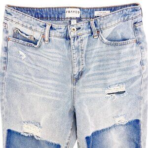 Frayed High Rise Ankle Straight Jeans Patchwork Size 31