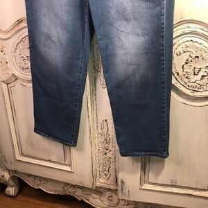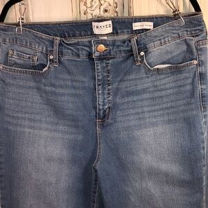 Frayed High Rise Straight Leg Medium Wash Jeans Size 16/33