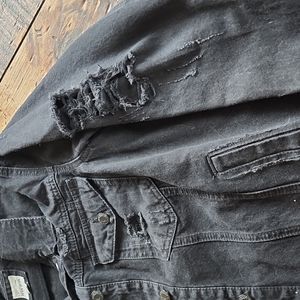 black frayed Jean jacket, includes inside pockets
