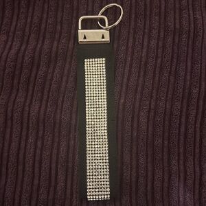 Back to Black Rhinestone Wristlet Keychain. Perfect accessory for your keys and even book bag/gym bag.