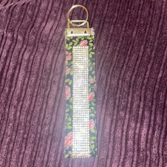 Rose rhinestone wristlet keychain. LIMITED EDITION. Perfect accessory for your keys and even book bag/gym bag.