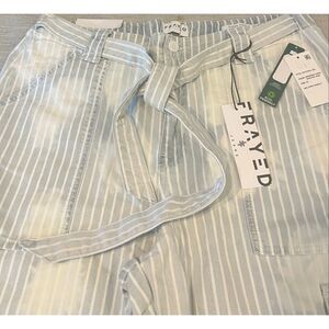 Frayed Women's Belted Tie Front Straight Cargo Pocket Chino Pants -32