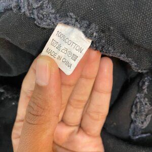 • Condition: Pre-owned – good condition with light wear; edges intentionally frayed for a distressed look.