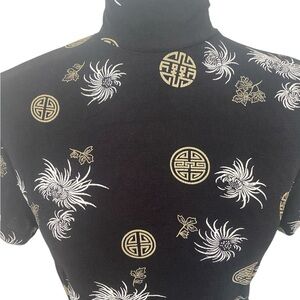 Frazier Lawrence Womens Slinky Asian Print Black Y2k Turtleneck Top Size Medium
