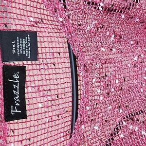 Frazzle Pink Tweed Scoop Neck Adjustable Sleeves Roll Tab Sz. L Top