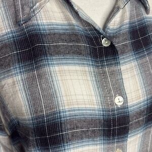 Frazzle Plaid Button-Up Shirt with Lace Cuffs & Embroidered Back Panel. Small